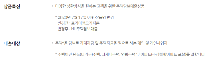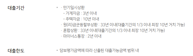 주택을 담보로 가계자금 및 주택자금을 필요로 하는 직장인 및 개인사업자가 이용할 수 있으며, 여기서 말하는 주택이란 단독주택 및 다세대주택, 연립주택 및 아파트를 뜻하니 참고바랍니다.