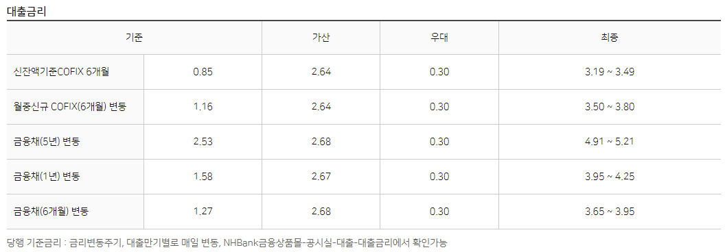 다만 위의 금리는 참조용이며, 실제 금리는 신청시기 및 대출기간, 대출 금액 등에 따라 개인별 차등 적용됩니다.