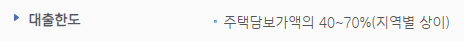기업은행 주택담보대출은 주택담보가액의 40~70%까지 책정될 수 있습니다.