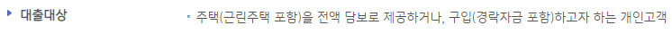 정부지원 주택담보대출 상품인 보금자리론 및 내집마련 디딤돌 대출을 이용하기 어려운 분들이 대안으로 이용할 수 있습니다.